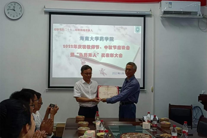 “弘药育人”奖表彰大会。大会由学院书记胡静主持,全体教职工参加。