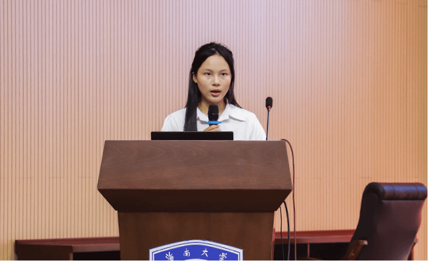 在学生代表发言环节中,2021级药学本科生何雨欣同学代表老生发言。她结合个人在校期间的学习和生活经历,向新生们分享了大学学习和成功获取推免生资格的宝贵经验,并勉励新生在学业上保持恒心和毅力,全面提升综合素质。随后,2024级本科生代表庞爱欣和研究生新生代表焦子怡依次发言,表达了对在海南大学学习和成长的热切期望,立志在校期间将沉下心来好好学习,认真开展科学研究,积极参加社会实践,在药学领域追求卓越,勇于承担社会责任,力争为国家和社会贡献力量。