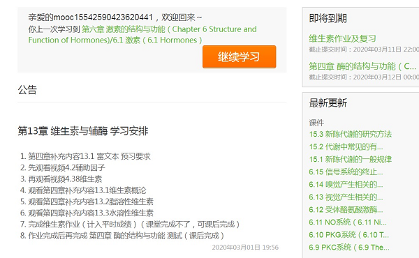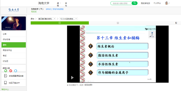 图3 韦双双老师《生物化学》(下)慕课平台网页
