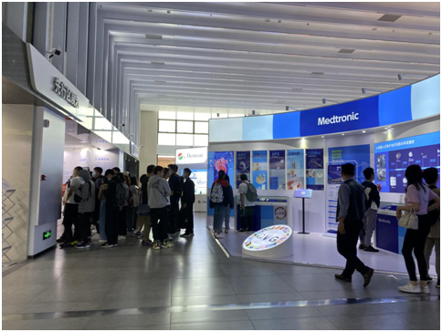 图2 同学们“永不落幕”国际创新药械展区