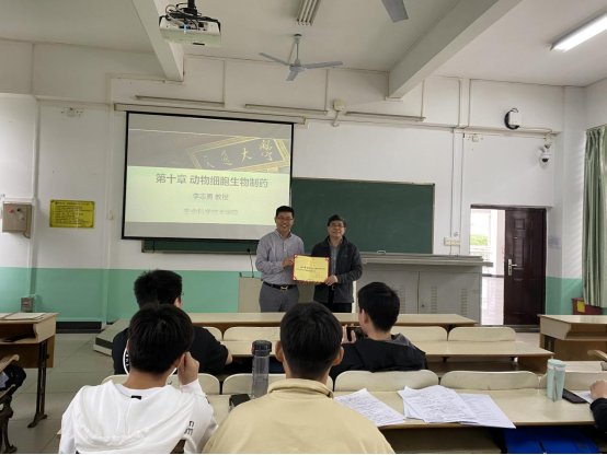 2018级生物技术专业学生讲授《细胞工程》课程。学院副院长韩谦教授代表学院为李志勇教授颁发“海南大学冬季小学期外聘专家”聘书。