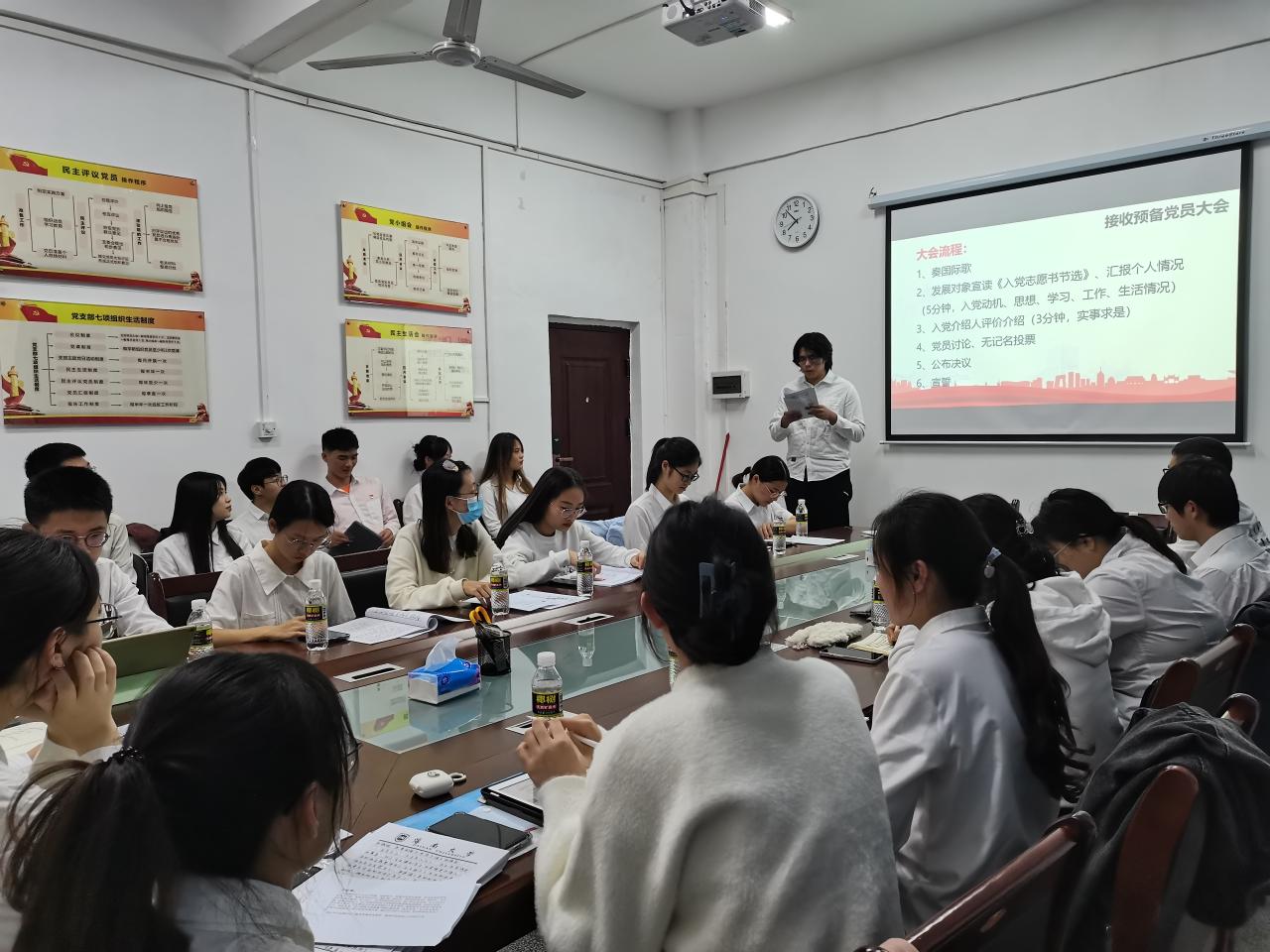 药学制药工程专业本科生党支部于2021年12月06日召开2021年12月党员大会暨接收预备党员大会和预备党员转正大会。支部26名党员参加,3名党员因课程冲突请假。