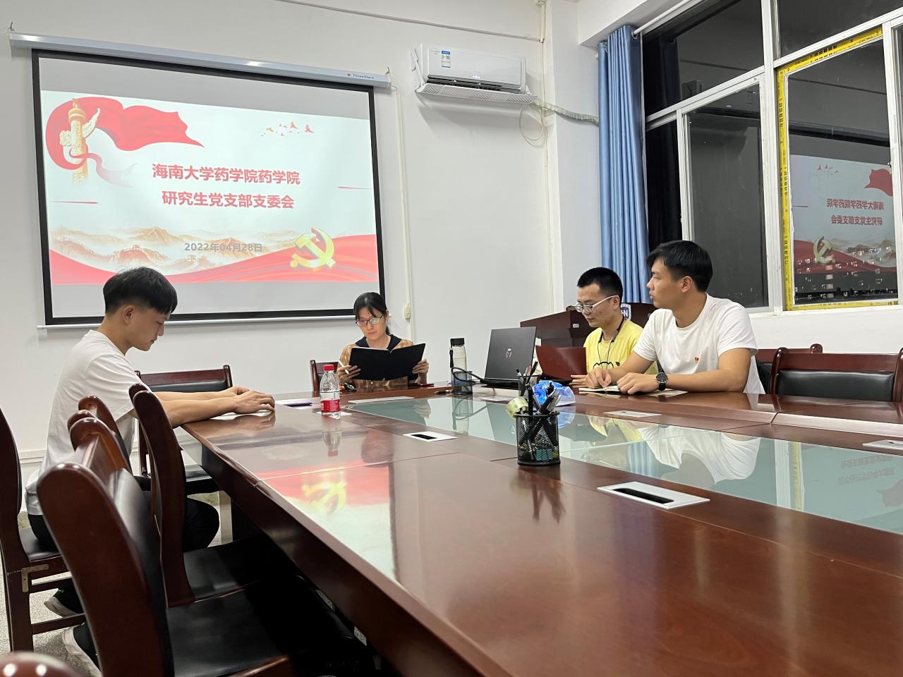研究生党支部于2022年04月21日晚20:00于学院608会议室召开2022年4月研究生党支部支委会。会议由研究生党支部书记黄玲老师主持,支委成员孙鑫、张鑫和申逸全部参会。