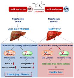 课题组前期应用非靶向代谢组学研究首次发现肝-肠轴L-天冬氨酸代谢异常是代谢紊乱相关脂肪肝病(MAFLD)发生的关键原因之一(Gut Microbes, 2021),但L-天冬氨酸的治疗作用与调控机制仍有待确证。本研究在前期基础上进一步探索L-天冬氨酸在四氯化碳诱导小鼠急性肝损伤与肝纤维化治疗作用与药理机制。研究发现小鼠口服L-天冬氨酸可有效逆转四氯化碳诱导急性肝损伤与肝纤维化。机制研究发现L-天冬氨酸通过重塑肝脏胆固醇-胆汁酸代谢平衡,抑制肝脏胆汁酸代谢中间物质皮质酮蓄积介导的糖皮质激素受体(GR)转录调控功能激活,从而逆转线粒体功能紊乱,保护肝脏。该研究工作以题目为“Amplifying hepatic L-aspartate levels suppresses CCl4-induced liver fibrosis by reversing glucocorticoid receptor ß-mediated mitochondrial malfunction”于2024年发表在Pharmacological Research(中国科学院一区,影响因子9.1)。海南大学为通讯单位,优德
